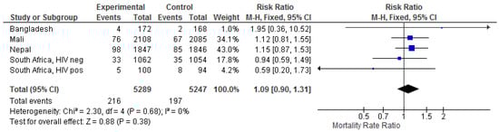 - Clark, D.R.; Omer, S.B.; Tapia, M.D.; Nunes, M.C.; Cutland, C.L.; Tielsch, J.M.; Wairagkar, N.; Madhi, S.A. Influenza or Meningococcal Immunization During Pregnancy and Mortality in Women and Infants: A Pooled Analysis of Randomized Controlled Trials. Pediatric Infect. Dis. J. 2020, 39, 641. [Google Scholar] [CrossRef]