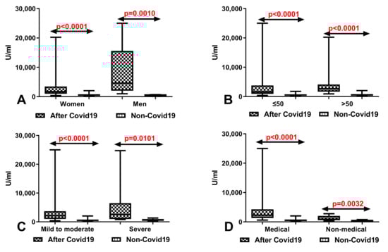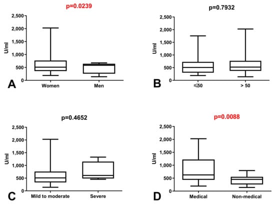 3.3. Comparison of Total Anti-SARS-CoV-2 Antibodies Level in Group of Workers with History of COVID-19