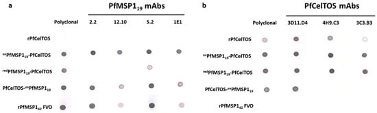 - Bergmann-Leitner, E.S.; Mease, R.M.; De La Vega, P.; Savranskaya, T.; Polhemus, M.; Ockenhouse, C.; Angov, E. Immunization with pre-erythrocytic antigen CelTOS from Plasmodium falciparum elicits cross-species protection against heterologous challenge with Plasmodium berghei. PLoS ONE 2010, 5, e12294. [Google Scholar] [CrossRef] [PubMed]