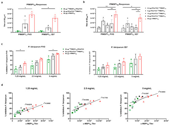 - Singh, S.; Miura, K.; Zhou, H.; Muratova, O.; Keegan, B.; Miles, A.; Martin, L.B.; Saul, A.J.; Miller, L.H.; Long, C.A. Immunity to recombinant plasmodium falciparum merozoite surface protein 1 (MSP1): Protection in Aotus nancymai monkeys strongly correlates with anti-MSP1 antibody titer and in vitro parasite-inhibitory activity. Infect. Immun. 2006, 74, 4573–4580. [Google Scholar] [CrossRef]