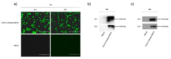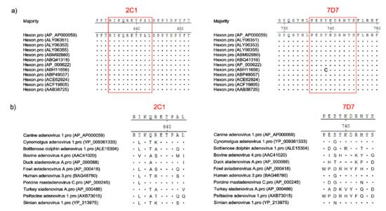 3.2. MAbs 2C1 and 7D7 Specifically Recognize the CAdV-2 Hexon Protein