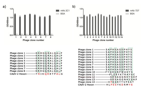2.6. Biopanning of Phage Random Peptide Library against Anti-CAdV-2 mAbs