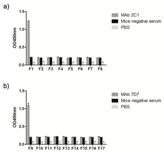 3.3. Phage-Displayed Mimic Epitopes Biopanned by mAbs 2C1 and 7D7