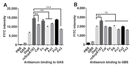 3.3. Antiserum Binding to GAS and GBS Bacterium