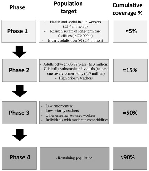 - Ministero della Salute; Presidenza del Consiglio dei Ministri; Istituto Superiore di Sanità; Agenzia Nazionale per i Servizi Sanitari Regionali; Agenzia Italiana del Farmaco. Vaccinazione anti-SARS-CoV-2/COVID-19. Piano Strategico. Available online: http://www.salute.gov.it/imgs/C_17_pubblicazioni_2986_allegato.pdf (accessed on 20 January 2021).