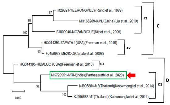 - Kumar, S.; Stecher, G.; Li, M.; Knyaz, C.; Tamura, K. MEGA X: Molecular evolutionary genetics analysis across computing platforms. Mol. Biol. Evol. 2018, 35, 1547–1549. [Google Scholar] [CrossRef]