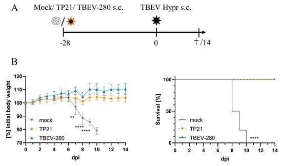 3.1. TP21 and TBEV-280 Immunization Protects Mice from Lethal TBEV-Hypr Infection