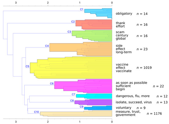 Cluster C10 contains comments about government measures as well as a sizable number of sceptics (Table 6).