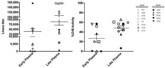 We observed a clear difference according to disease progression at the later timepoints assayed, by four years of age, when only slow progressors had a substantial increase in potency and breadth of their Nab response. In line with these results, we previously reported on the emergence of antigenically more diverse virus populations in slow than in rapid progressors of this same group of children, as a result of a stronger immune pressure [49]. Unfortunately, the study by Goo does not follow-up the children as long as we did, and thus does not allow for comparison.