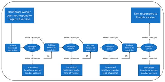 Healthcare providers who did not develop immunity to HBV after completing the 3-dose vaccination schedule with Engerix B® at months 0, 1, and 6 (anti-HBs level < 10 after the vaccination) were informed about the possibility to develop immunity against Hepatitis B by commencing a vaccination schedule with Fendrix®.