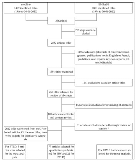 APA StyleEnok Bonong, P. R., Zahreddine, M., Buteau, C., Duval, M., Laporte, L., Lacroix, J., Alfieri, C., & Trottier, H. (2021). Factors Associated with Post-Transplant Active Epstein-Barr Virus Infection and Lymphoproliferative Disease in Hematopoietic Stem Cell Transplant Recipients: A Systematic Review and Meta-Analysis. Vaccines, 9(3), 288. https://doi.org/10.3390/vaccines9030288