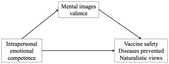 When looking at the correlations, average mental images were positively related to intrapersonal emotional competence, whereas the correlation with interpersonal emotional competence was not significant. Further, average mental images were negatively correlated with scores of the “Vaccine safety” and “Naturalistic views” factors but positively correlated with the score of the “Disease prevented” factor. The same pattern of correlations was found for the relations between the intrapersonal and interpersonal emotional competencies and the three factors describing people’s attitude towards vaccinations (see Table 4).