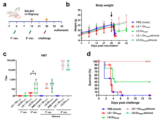 - Chrun, T.; Lacote, S.; Urien, C.; Richard, C.A.; Tenbusch, M.; Aubrey, N.; Pulido, C.; Lakhdar, L.; Marianneau, P.; Schwartz-Cornil, I. A DNA Vaccine Encoding the Gn Ectodomain of Rift Valley Fever Virus Protects Mice via a Humoral Response Decreased by DEC205 Targeting. Front. Immunol. 2019, 10, 860. [Google Scholar] [CrossRef] [PubMed]