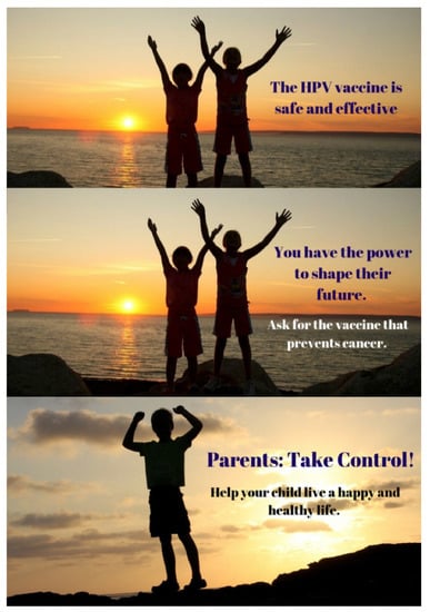- Cartmell, K.B.; Mzik, C.R.; Sundstrom, B.L.; Luque, J.S.; White, A.; Young-Pierce, J. HPV Vaccination Communication Messages, Messengers, and Messaging Strategies. J. Cancer Educ. 2018, 34, 1014–1023. [Google Scholar] [CrossRef]