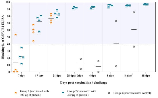 3.1. E2-Antibody Response and Clinical Signs Generated in Sows after Vaccination and Challenge