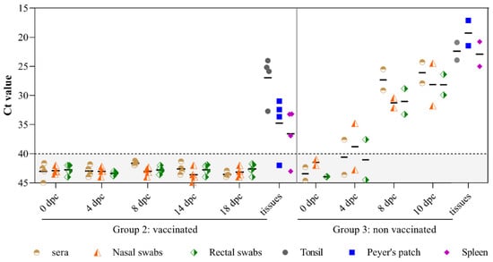 3.4. Protection Levels of Fetuses from Either Vaccinated or Non-Vaccinated Sows after CSFV Challenge