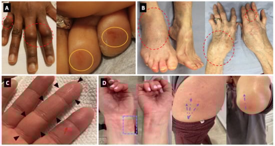 - McGonagle, D.; Bridgewood, C.; Ramanan, A.V.; Meaney, J.F.M.; Watad, A. COVID-19 vasculitis and novel vasculitis mimics. Lancet Rheumatol. 2021. [Google Scholar] [CrossRef]