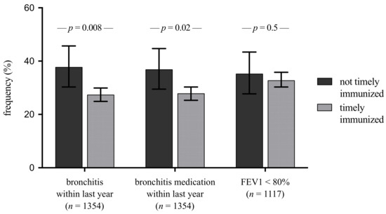 3.4. Non-Timely Immunized Infants Have an Increased Bronchitis Risk at the Age of 5 Years