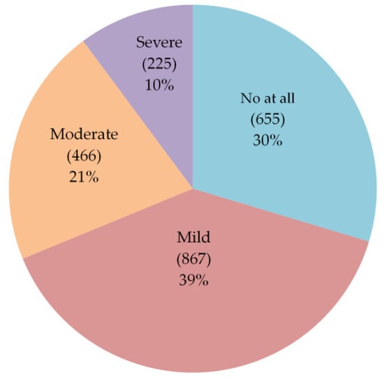 In the present study, out of all participants (2213), 1558 (70%) reported post-vaccination side effects; of them, the majority reported mild (39%) to moderate (21%) side effects. Only 10% suffered from severe side effects (Figure 4). Obviously, the severity of side effects among participants differed based on the type of COVID-19 vaccine. Most of the participants who reported high percentages of moderate to severe side effects (in descending order) were received AstraZeneca, Pfizer-BioNTech, and Sinopharm vaccines, and vice versa for those who recorded no to mild side effects (Figure 5).