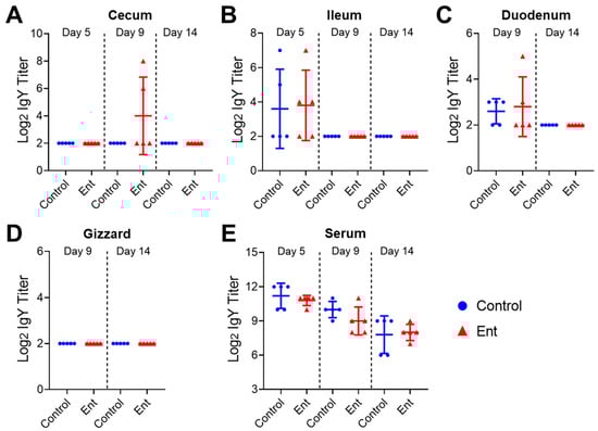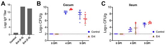 3.2. The Anti-Ent Egg Yolk Failed to Reduce Intestinal Colonization of C. jejuni