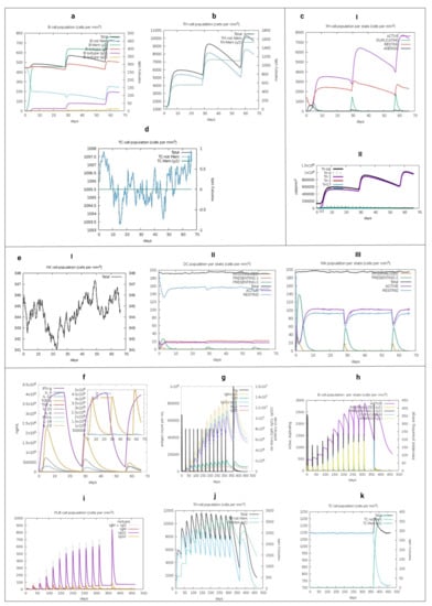 The immunogenic behavior of the multi-epitope construct was simulated using the C-IMMSIM server (https://kraken.iac.rm.cnr.it/C-IMMSIM/, accessed on 19 December 2020). This agent-based computer model handles a diverse number of cells representing innate and acquired immunity. By following a set of rules obtained at an experimental level, interactions with the vaccine construct are capable of simulating behaviors that may suggest the probable generation of immune memory. This is achieved by combining the mesoscopic scale of the immune system using three compartments: the bone marrow, thymus, and lymphatic organs. In addition, it uses deep learning tools and molecular level techniques to predict the interaction of the construct and its affinity from the matrices of some HLA molecules. The algorithm can also identify probable linear BLs epitopes from physicochemical parameters. The minimum inter-dose time for current vaccines is no more than 4 weeks. For this reason, simulation values were adjusted with three injections separated by 1, 84, and 168 time-steps, resulting in <4 weeks between doses. The simulation was completed in up to 200 time-steps, with other predetermined values.