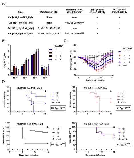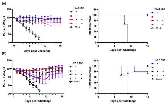 3.6. NS1, but Not PA-X, Prevents the Generation of Protective Immunity against Heterologous Virus Challenge