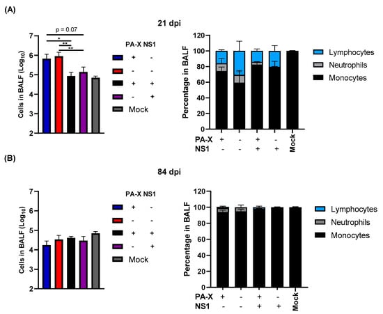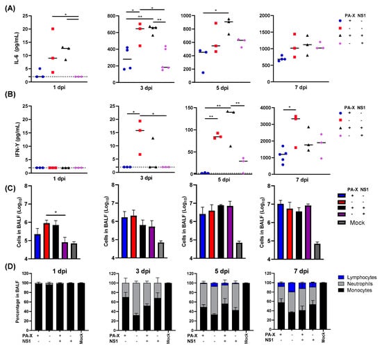 3.2. Both Shutoff Active NS1 and PA-X Limit Early Inflammatory Responses and Immune Cell Recruitment in the Lung