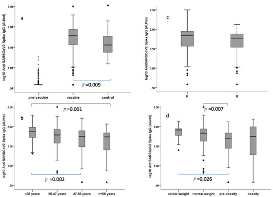 - Abu Jabal, K.; Ben-Amram, H.; Beiruti, K.; Batheesh, Y.; Sussan, C.; Zarka, S.; Edelstein, M. Impact of age, ethnicity, sex and prior infection status on immunogenicity following a single dose of the BNT162b2 mRNA COVID-19 vaccine: Real-world evidence from healthcare workers, Israel, December 2020 to January 2021. Eur. Surveill. 2021, 26, 2100096. [Google Scholar] [CrossRef]