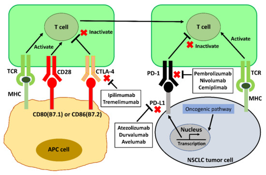 The mechanism of anti-PD-1/PD-L1 and anti-CTLA-4 ICIs is summarized in Figure 1. The main clinical trials which have approved anti-PD-1/PD-L1 and anti-CTLA-4 ICIs for front-line NSCLC therapy are listed in Table 1.