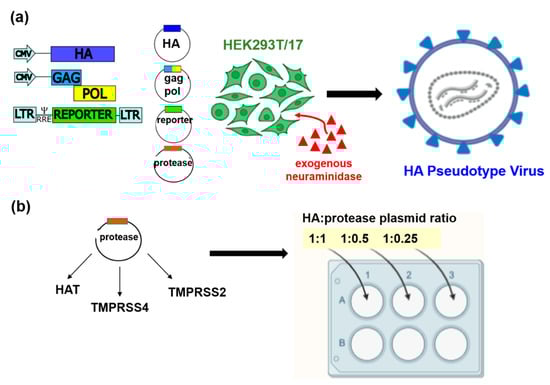 - Ferrara, F.; Molesti, E.; Böttcher-Friebertshäuser, E.; Cattoli, G.; Corti, D.; Scott, S.D.; Temperton, N.J. The human Transmembrane Protease Serine 2 is necessary for the production of Group 2 influenza A virus pseudotypes. J. Mol. Genet. Med. 2012, 7, 309–314. [Google Scholar] [CrossRef]