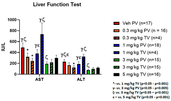 3.4. Equivalent Hepatic Toxicity Comparing Delivery Methods with Similar Doses