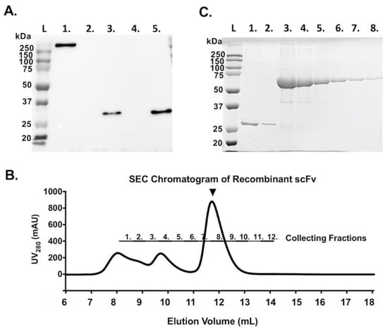 2.4. Purification of scFv by Using Immobilized Metal Affinity Chromatography (IMAC) and Size Exclusion Chromatography (SEC)