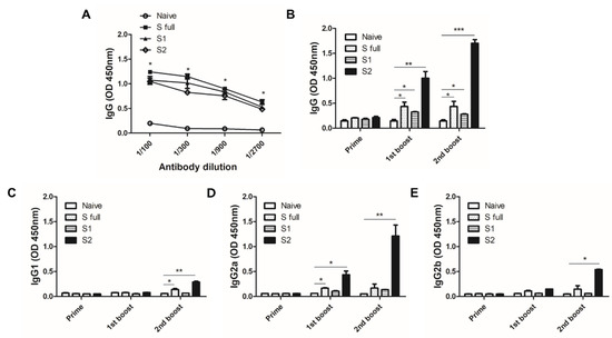 2.6. Antibody Responses against S1 and S2 Proteins of SARS-CoV-2