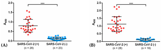 Statistical analysis was performed with GraphPad Prism 6.01 software (San Diego, CA, USA). The difference between the two groups was evaluated using the non-parametric Mann–Whitney ranked test and p-value < 0.05 was considered significant. Values obtained with dilution buffer were subtracted from those obtained with the sera.