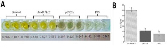 3.3. Binding Ability of rTs-MAPRC2 Protein by Sandwich ELISA
