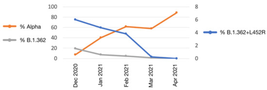 3.1. Characterization and Epidemiology of the B.1.362+L452R Variant