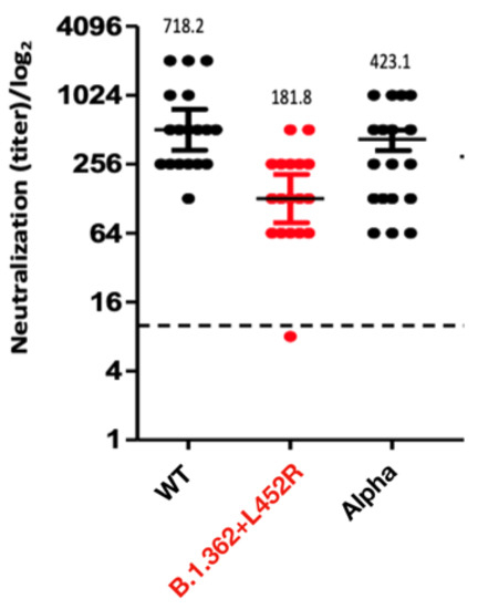 3.2. Neutralizing Capacity against the B.1.362+L452R Variant Following BNT162b2 Vaccination