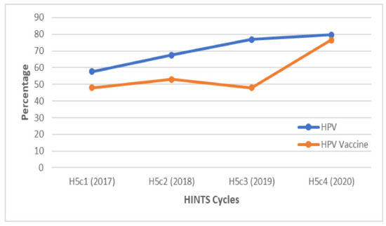 During the study period (2017–2020), awareness of HPV and the HPV vaccine were assessed, respectively, using the questions “Have you ever heard of HPV? HPV stands for Human Papillomavirus. It is not HIV, HSV, or herpes”, and “A vaccine to prevent HPV infection is available and is called the cervical cancer vaccine or HPV shot. Before today, have you ever heard of the cervical cancer vaccine or HPV shot?”. Possible responses to both questions were “yes” or “no” [20].