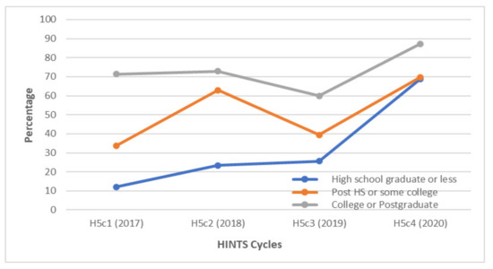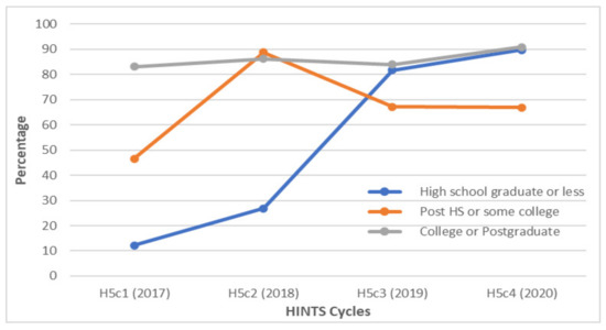 The study used data from the National Cancer Institute’s (NCI) Health Information National Trends Survey (HINTS). HINTS is a nationally representative survey of noninstitutionalized individuals within the US general population aged at least 18 years [18,19]. Data used in this study were obtained from HINTS 5, cycle 1; HINTS 5, cycle 2; HINTS 5, cycle 3; and HINTS 5, cycle 4. Data for these cycles were collected in 2017 (HINTS 5, cycle 1); 2018 (HINTS 5, cycle 2); 2019 (HINTS 5, cycle 3), and 2020 (HINTS 5, cycle 4). All cycles utilized a two-stage sampling strategy [20].