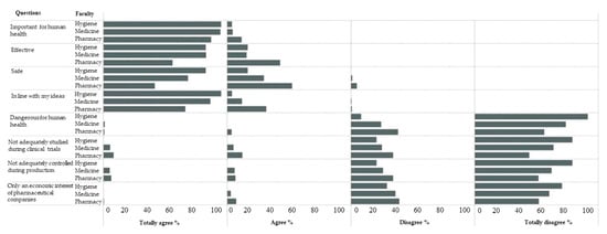 We assessed the attitudes and perceptions towards vaccines and vaccinations of students enrolled on the single-cycle degrees in Medicine and Surgery, Pharmacy, and in the postgraduate school of Hygiene and Preventive Medicine at the University of Florence (Italy). The evaluation was performed when the incidence of COVID-19 was high, COVID-19 vaccination had just begun for high-risk groups and new data or alarms were daily reported on media in Italy [].