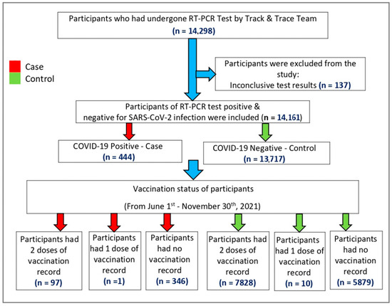 - Any children and adolescents aged 12–17 years residing in Qatar tested for SARS-CoV-2 using RT-PCR between 1 June 2021 and 30 November 2021 were eligible irrespective of nationality, gender, and vaccination status.