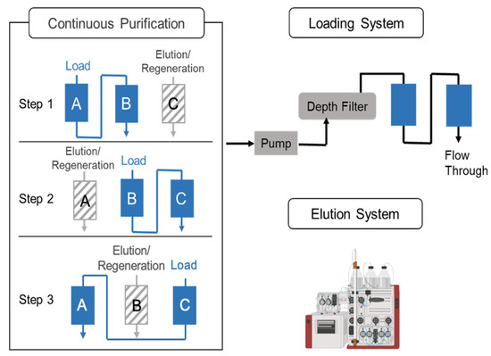 - Shi, C.; Zhang, Q.L.; Jiao, B.; Chen, X.J.; Chen, R.; Gong, W.; Yao, S.J.; Lin, D.Q. Process development and optimization of continuous capture with three-column periodic counter-current chromatography. Biotechnol. Bioeng. 2021, 118, 3313–3322. [Google Scholar] [CrossRef] [PubMed]
