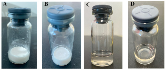 The A4 freeze-dried protectant vaccine (A,B) and the A4 freeze-dried protectant vaccine after reconstitution (C,D).
