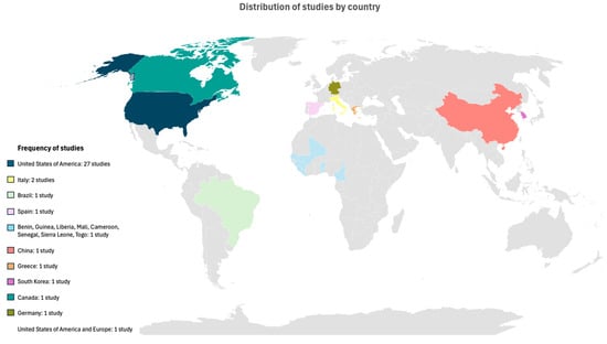 Geographical distribution of studies conducted by country.