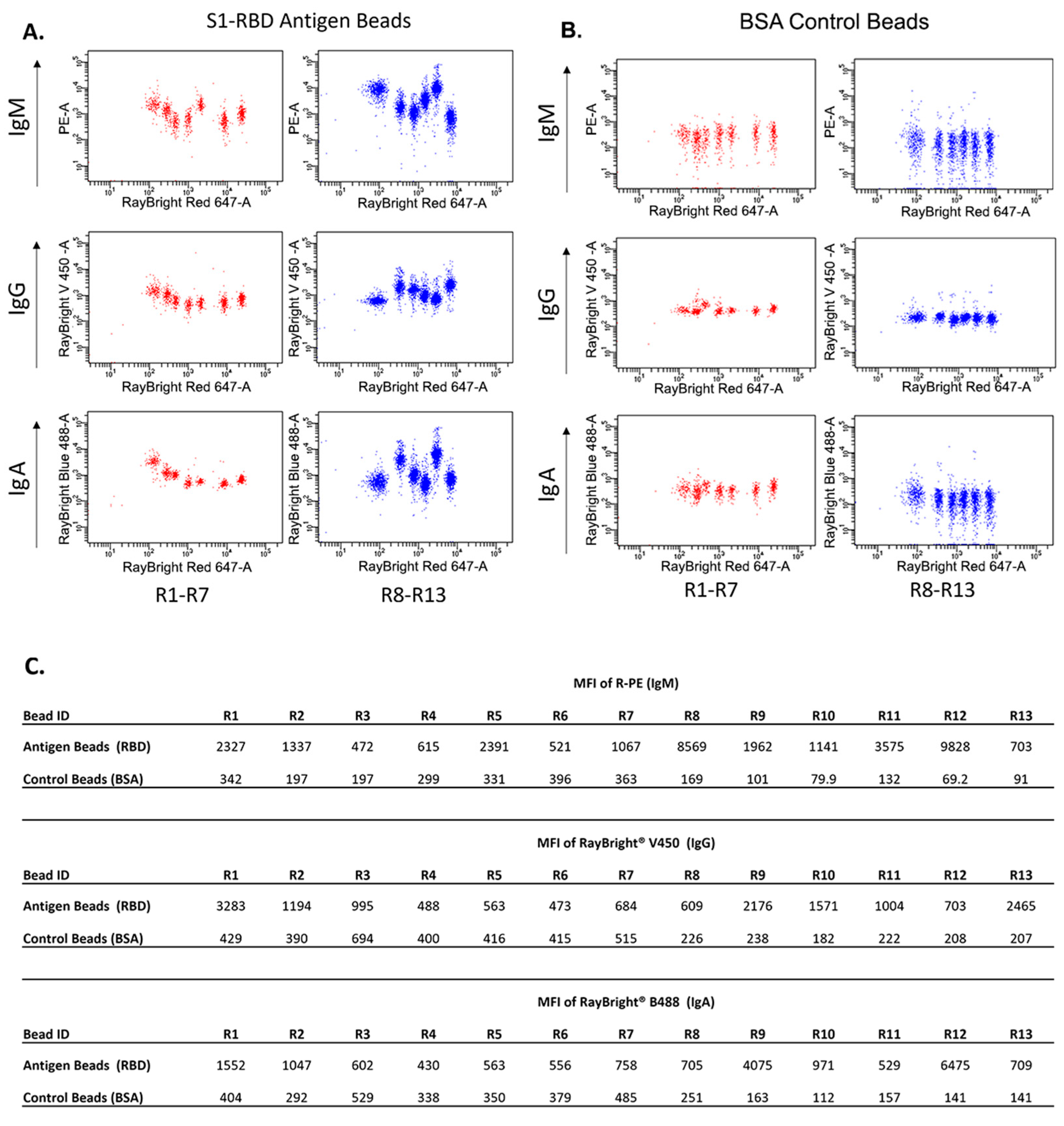 Bead ID | MFI of RayBright® V450 (IgG) | ||||||||||||