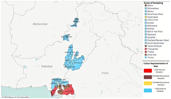 Figure 1 illustrates the provincial distribution of PPR outbreaks in Pakistan, highlighting high-risk areas based on serological and molecular data from national and regional surveys [,,,].
