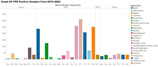 The risk factors and transmission dynamics of PPR in Pakistan have been studied by various researchers using epidemiological models and surveys []. The risk factors associated with PPR infection in small ruminants included age, sex, breed, species, herd size, herd composition, vaccination status, contact with other animals, and movement patterns [,,]. The transmission dynamics of PPR in Pakistan were influenced by the seasonal variations, climatic conditions, and socio-cultural practices. The disease was more prevalent in the winter and spring seasons when the animals were kept in close proximity and shared common grazing and watering sources []. The disease was also more prevalent in the regions where the livestock trade and movement were frequent and unregulated, such as the border areas with Afghanistan, Pakistan and Iran []. The socio-cultural practices, such as animal sacrifice during religious festivals, animal exchange during marriages, and animal sharing among relatives and neighbors, also facilitated the spread of PPR in Pakistan and other neighbored country [,].