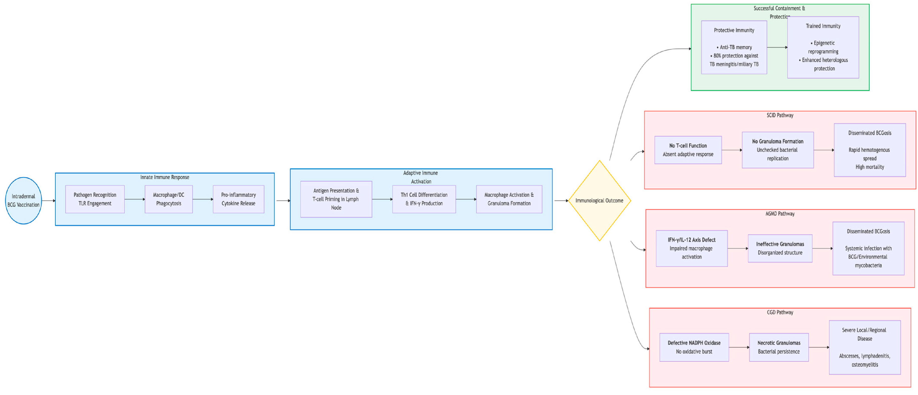 | Disseminated BCGosis | 3–12 months | Systemic illness (fever, hepatosplenomegaly, pancytopenia) | 0.1–1.0/1,000,000 | Underlying severe immunodeficiency |