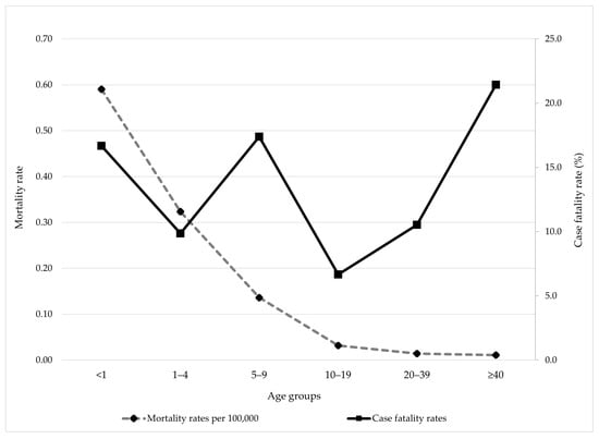 Mortality and case fatality rate by age groups of meningococcal disease in AP Vojvodina, 1997–2024.