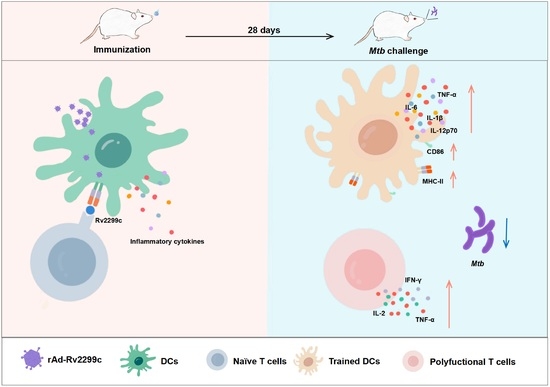 3.5. rAd-Rv2299c Enhances Anti-Mtb Recall Immune Responses
